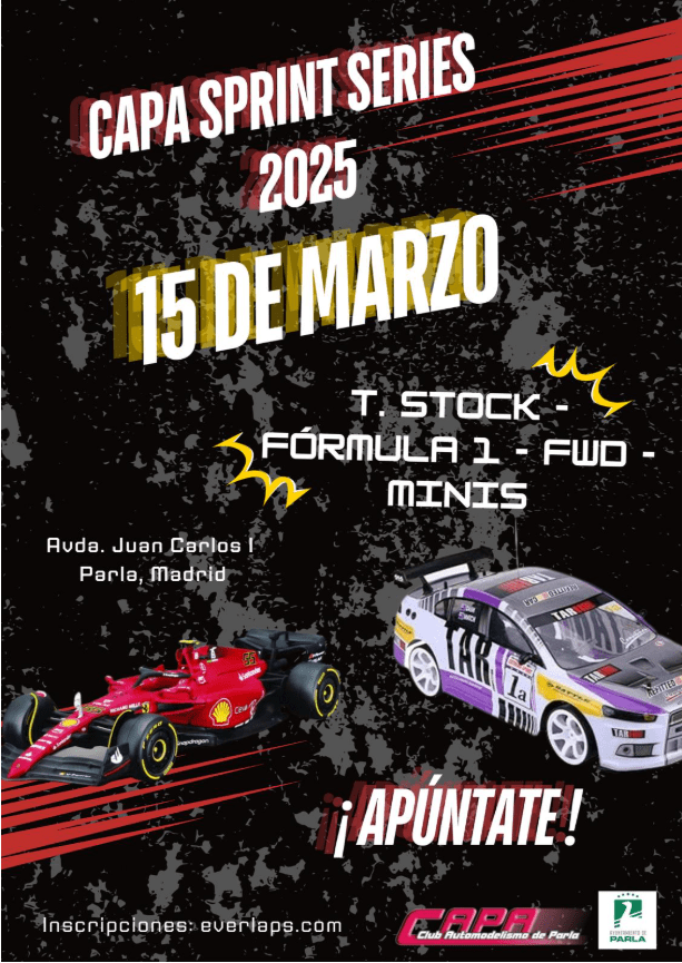 ¡Calienten motores! El próximo 29 de marzo celebramos la Primera Prueba Social CAPA 2026. Los pequeños gigantes toman la pista de Parla para la prueba más espectacular del año. Si eres piloto, ¡es hora de ajustar ese diferencial! Y si eres fan de la velocidad, ven a disfrutar de la emoción del radiocontrol en un ambiente inmejorable. ¡Te…